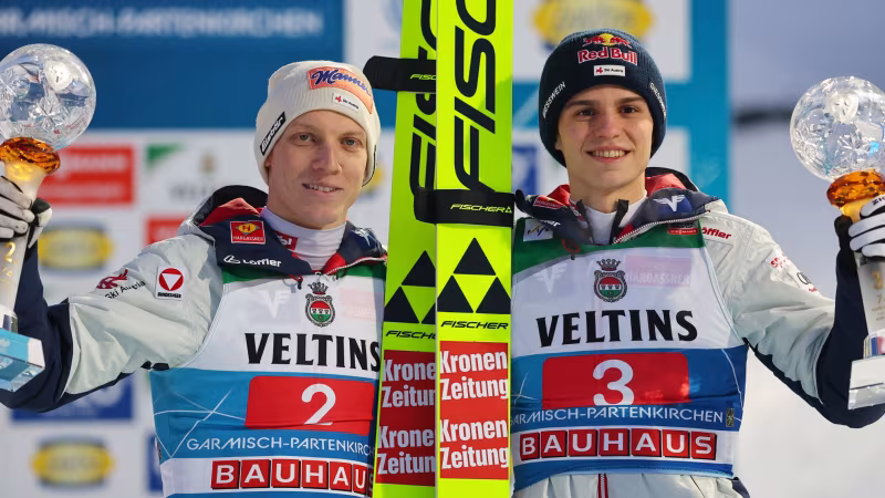 Jan Hörl und Stephan Embacher landeten in Garmisch-Partenkirchen auf den Plätzen zwei und drei, im Kampf um den Triumph bei der 74. Vierschanzentournee muss das rot-weiß-rote Duo zur Halbzeit aber schon auf ein Wunder hoffen. Denn Prevc führt vor dem Springen am Innsbrucker Bergisel bereits 35 Punkte vor Hörl. Tournee-Gesamtwertung nach zwei von vier Springen >>>